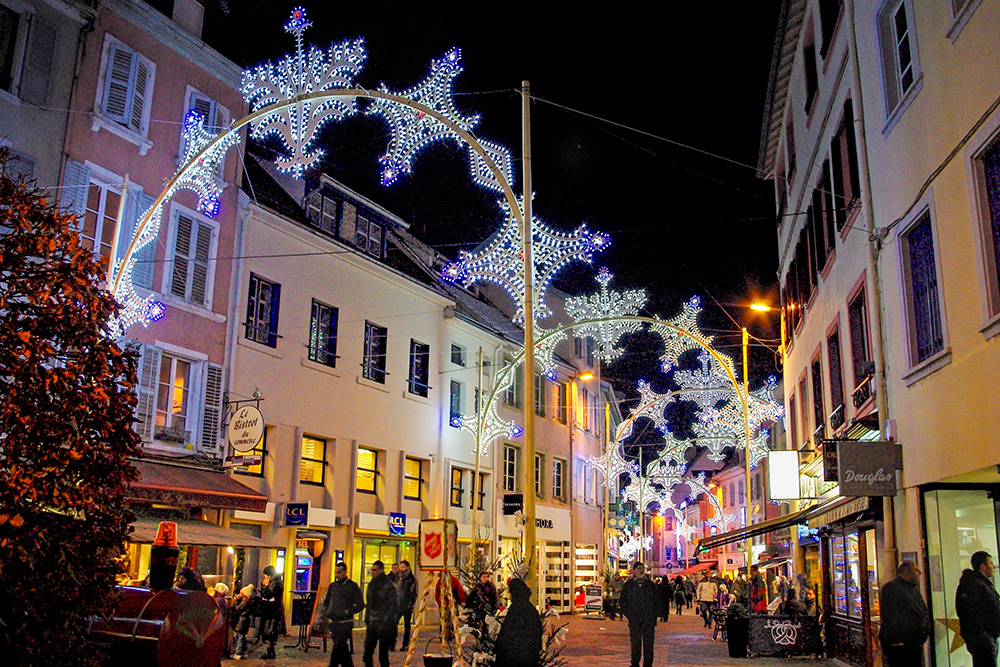 When December hits, Montbéliard transforms into a glowing wonderland for Les Lumières de Noël. Thousands of lanterns and arches light up the whole town, turning it into a dream.